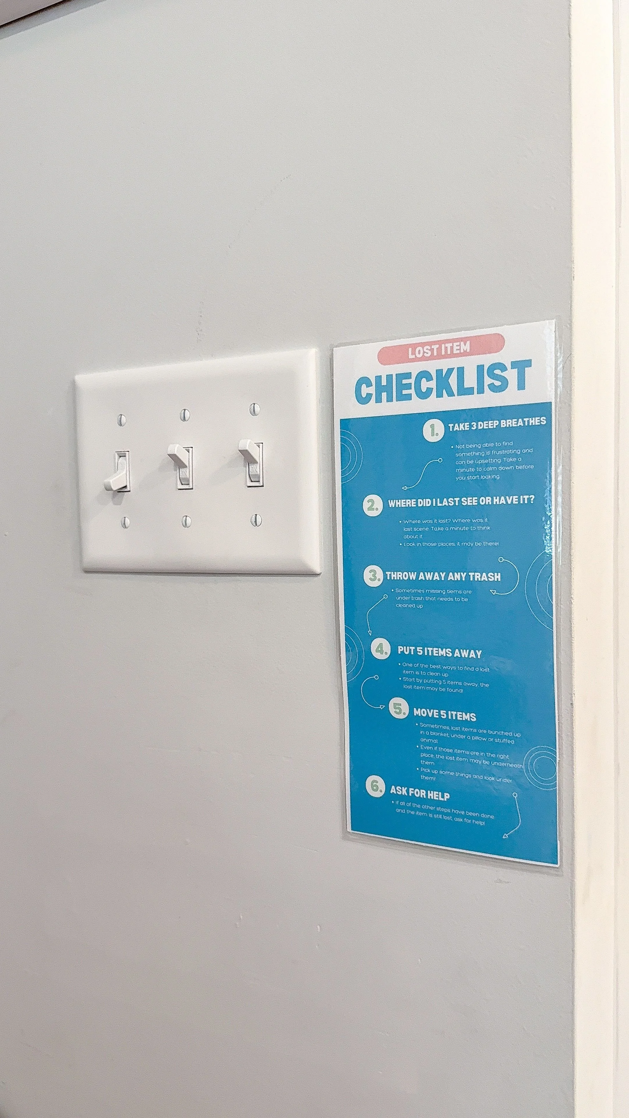 If all of the other steps have been done and the item is still lost, it is okay to ask for help. I feel like there is this trend of insisting that special needs kids, especially autistic and ADHD kids, can do things independently on their own without any help, but that's not an expectation we have of kids that are neurotypical or don't have special needs. Adults are allowed to ask for help, and even encouraged to do so so why shouldn't kids? I really wanted to reinforce that ability and make it perfectly clear that it is okay, after you have exhausted all of your efforts, to ask for help from an adult.